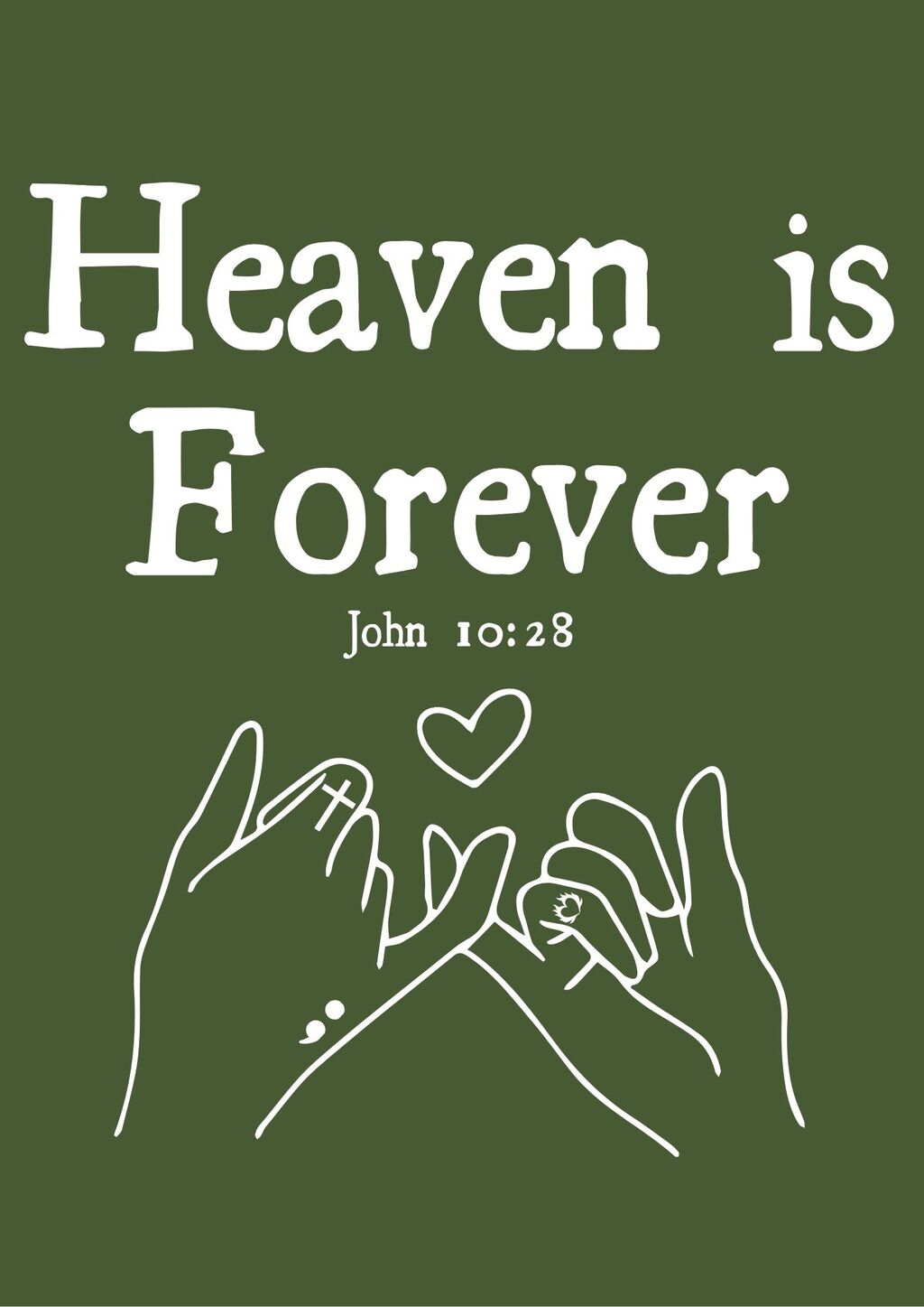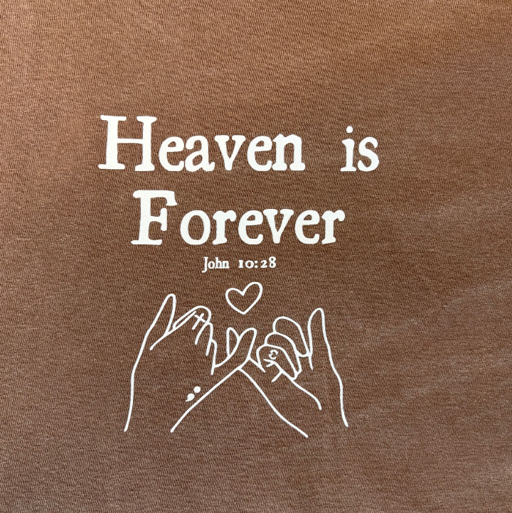 • About the design: Heaven is our promise of eternity that we have the privilege to look forward to!  John 10:28 says, "I give eternal life to them. They will never perish, and no one will snatch them out of my hand." (WEB)