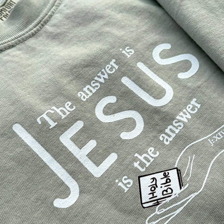 • About the design: The design is simple. The answer is JESUS. JESUS is the answer. No matter how you look at the question, Jesus is the answer to all of life's questions. Trust him with your questions, and you will never go wrong.